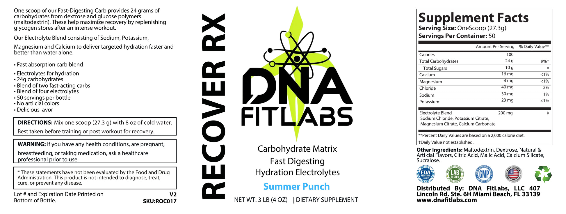 Intense workouts demand a serious recovery plan. Don't let your hard work go to waste. DNA FitLabs' RECOVER RX is your ultimate post-workout solution, scientifically formulated to help you bounce back faster and stronger. This delicious Summer Punch flavored powder is packed with everything you need to refuel and rehydrate.
